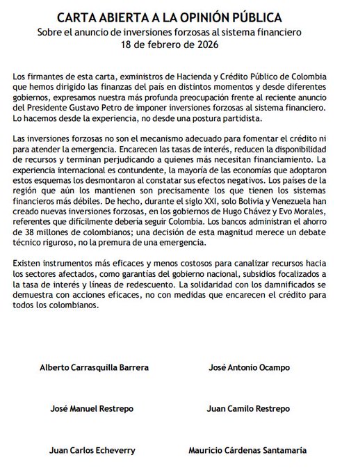 Bogotá, febrero 18 de 2026. El anuncio del presidente Gustavo Petro de imponer inversiones forzosas al sistema financiero generó una